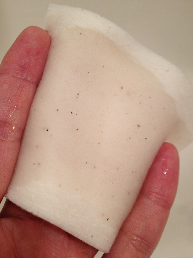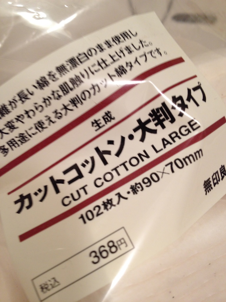 精製水を染込ませたところ。これで押さえるだけで化粧は落ちます。
